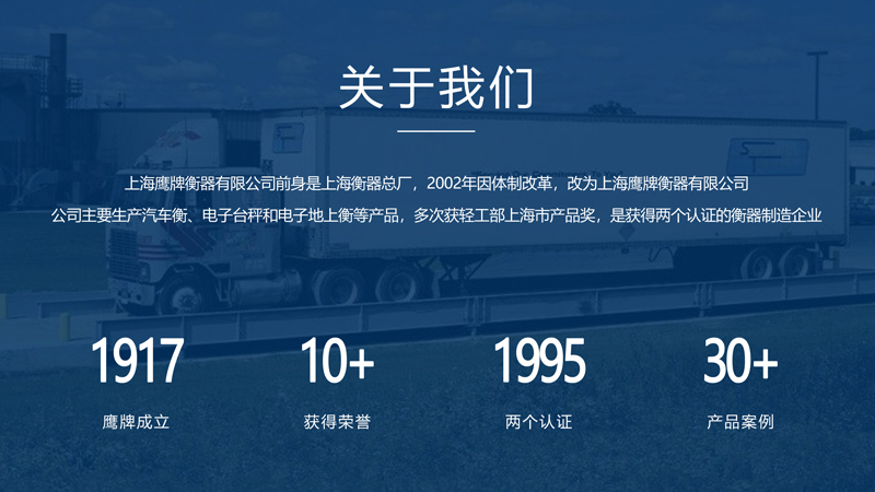 more+上海鷹牌衡器有限公司是上海衡器總廠轉(zhuǎn)制的企業(yè),前身是上海衡器總廠,創(chuàng)建于1917年,是地磅等衡器設(shè)計(jì)、制造廠家,主營(yíng)電子地磅、電子秤以及地磅維修,2002年因體制改革,改為上海鷹牌衡器有限公司!